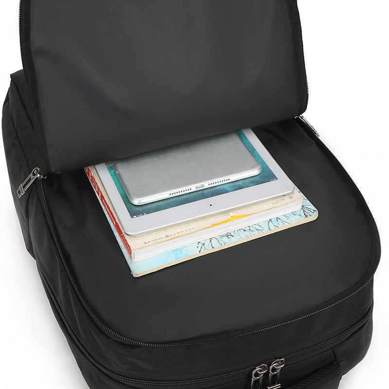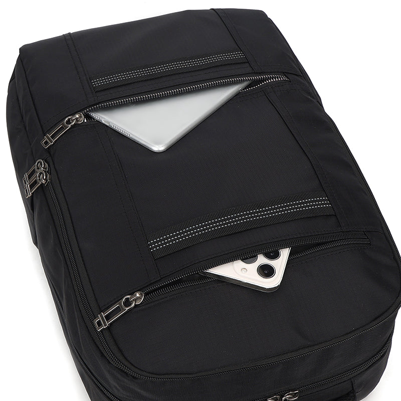 Crafted with lightweight waterproof fabrics and scratch-resistant materials, this men's travel backpack offers reliable protection against light rain and incidental scratches.